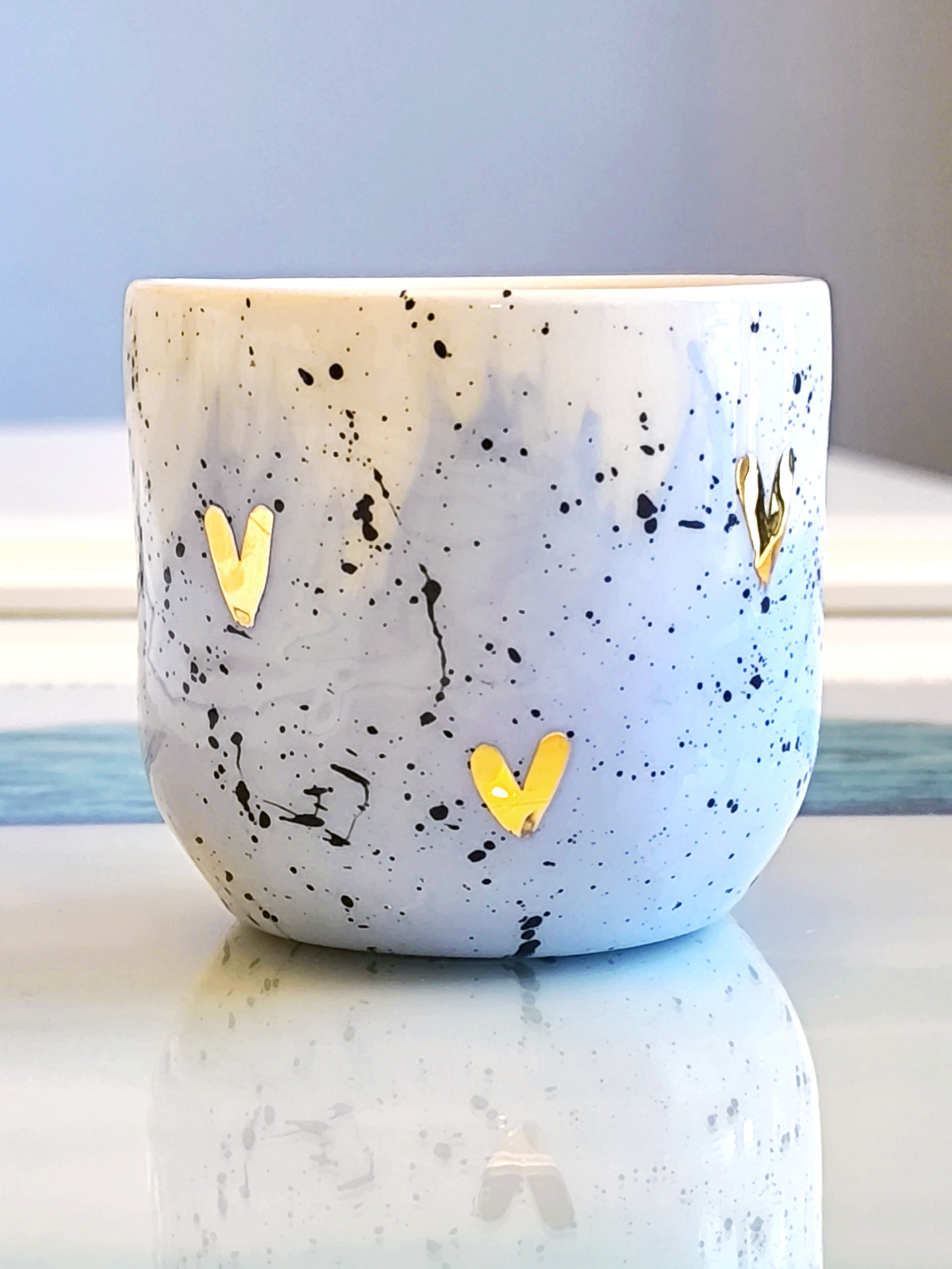 CERAMIC CUP, baby blue with gold hearts, 80ml