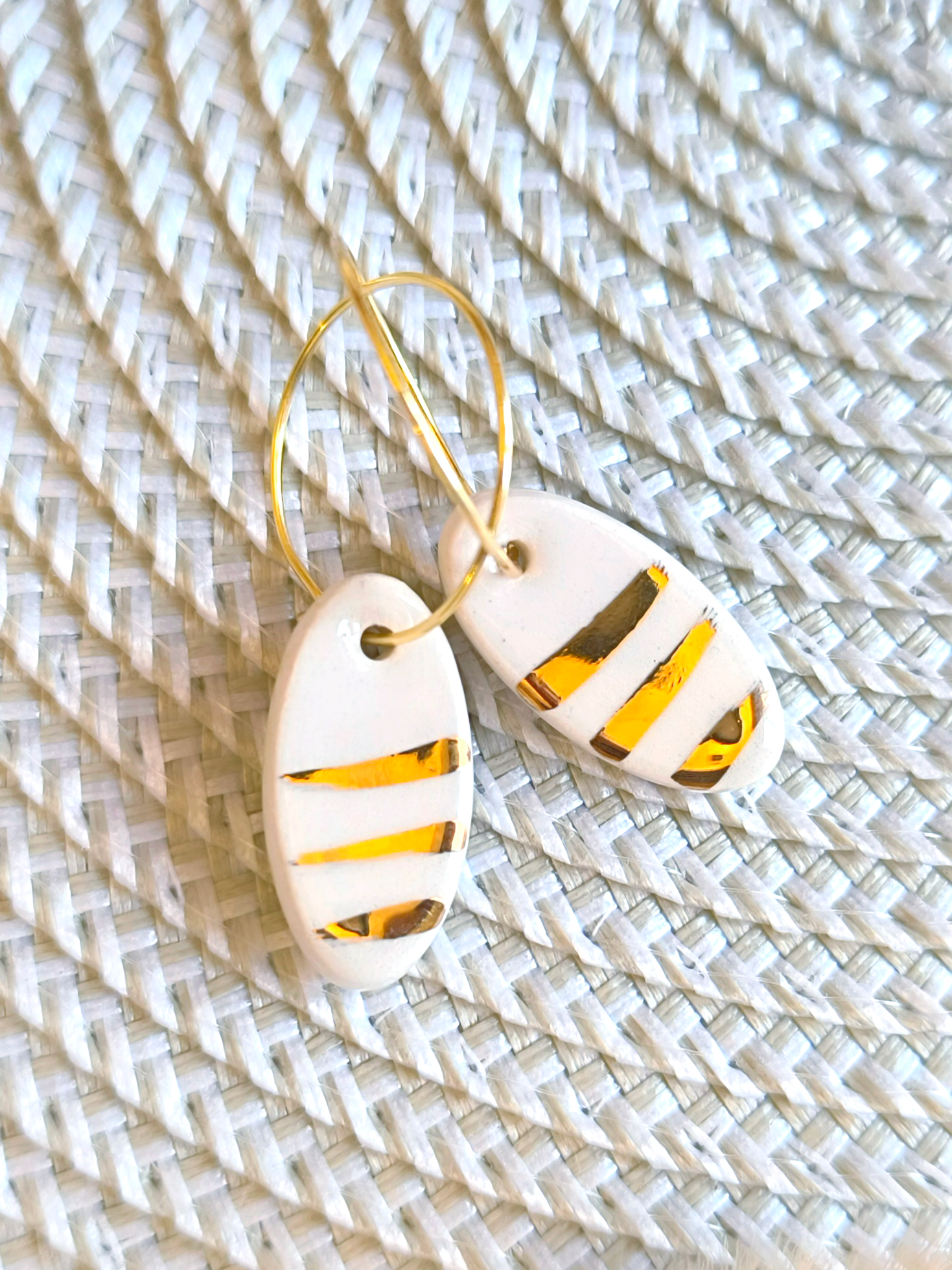 OVAL SHAPED ceramic dangle earrings, WHITE & GOLD
